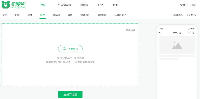 打开机智熊二维码官网,点击工具栏中的【图片】功能,上传图片。