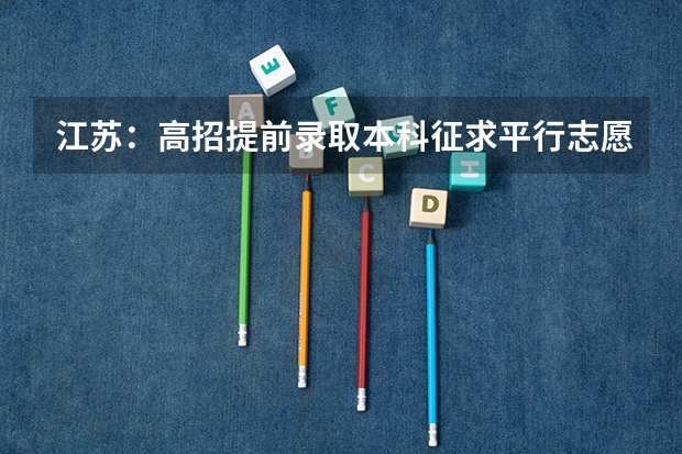 江苏:2011年高招提前录取本科批填报征求平行志愿通告一、填报征求平行志愿时间、地点及招生计划江苏省2011年普通高校招生文科类、理科类提前录取本科批次填报和确认征求平行志愿时间为7月11日8:30至15:00,确认地点由高考报名地县(市、区)招办指定。本次征求平行志愿包括军事(含无军籍学员、国防生)、公安、航海及其他共四类计划,具体详见《江苏省2011年文科类、理科类提前录取本科批次征求